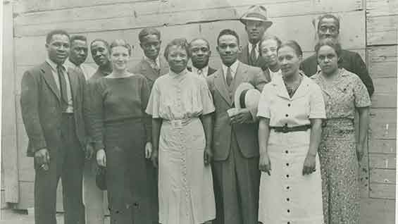 Harlem Community Art Center of the Works Progress Administration | Front row (left to right): Zell Ingram, Pemberton West, Augusta Savage, Robert Pious, Sarah West and Gwendolyn Bennett; back row (left to right): Elton Fax, Rex Goreleigh, Fred Perry, William Artis, Francisco Lord, Louise Jefferson and Norman Lewis. Photographer: Andrew Herman. Image credit: Schomburg Center for Research in Black Culture, Photographs and Prints Division, The New York Public Library.