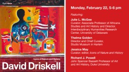 Join an online panel of curators and art historians featuring Julie L. McGee, Thelma Golden, and Richard J. Powell with curator and editor Jessica May as moderator as they discuss the legacy of artist, curator, art historian, and educator David Driskell (1931-2020), who was pivotal for bringing awareness to Black artists. The conversation centers on seven decades of Driskell’s painterly practice from the 1950s forward, and is timed to the publication of David Driskell: Icons of Nature and History (Rizzoli Electa in association with Portland Museum of Art, Maine, and the High Museum of Art, Atlanta), and the first posthumous traveling survey of Driskell’s work (currently open at the High before traveling to the Portland Museum of Art, the Phillips Collection, Washington, D.C., and the Cincinnati Museum of Art) that the catalog accompanies.