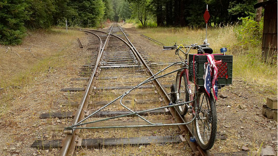 Built a bicycle that could ride the rails, and cycled on abandoned train tracks with portable a 19th century printing press, in exploration of the “tramp printers” who created much of the printed art of Northern California.