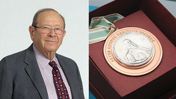Isaac Heller and the Peter Cooper Heritage Society Medal. Photo of Isaac Heller courtesy Heller Industrial Parks, Inc.