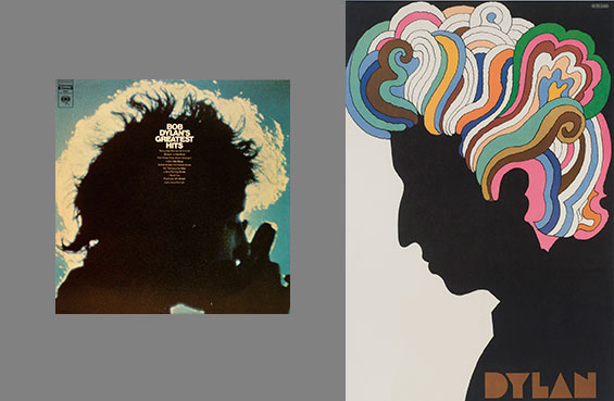 Bob Dylan Greatest Hits Dylan hadn't had any product out in while. So we decided that it would be nice for the consumer to give them a little bonus. It was the first time a poster was ever enclosed in an album. I picked Glaser because he had a big reputation as a poster artist.