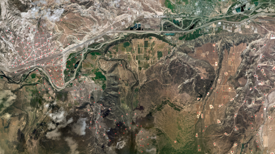 Hydro-fracking wells north of Denver, Colorado, showing vertical and horizontal drill patterns.