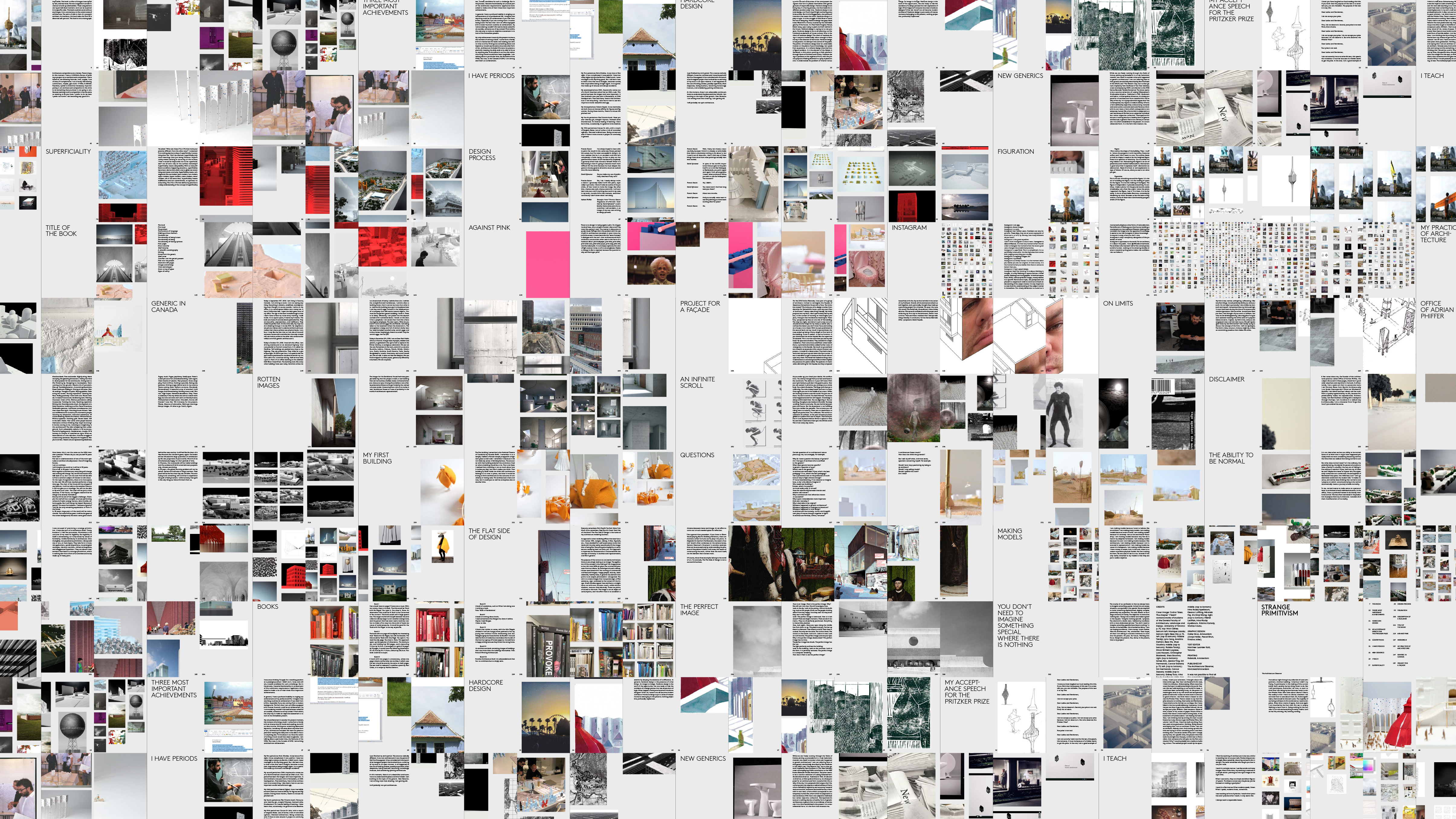 Conceived in collaboration with Hans Ibelings and the graphic design studio Haller Brun, the book is guided by a simple ambition: to construct an anti-monograph through rapid movements between layers of architectural anxieties, doubts, fixations, ambitions, regrets. It takes the form of a chubby volume, a brick of sorts, yet it behaves like an open field that can be entered at any page with no consequences for understanding. Reckless and intense, everything in Strange Primitivism is desperately urgent. The details don’t much matter. This wildness, this seeming unruliness of its manner runs against something slower and thicker, an insistent question related to architectural offices making books: For whom are architects still writing?