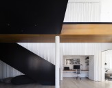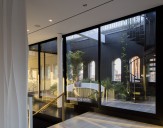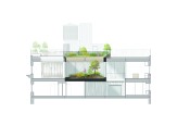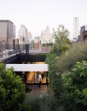 The Gerken Residence occupies 6,000 interior square feet and 1,500 square feet of roof garden on the top two floors (13 and 14) and roof of a historic Tribeca building. The proposal explores shifting relationships of solid and void through the interplay of three distinct nested prisms. At the entrance to the loft, a large courtyard opens the interior to the landscape, sky and city. This initial void is subsequently revealed to be bounded by a larger cut through the 14th floor, allowing the courtyard to be read as a floating glass mass, bridging the east and west sides of the plan, and opening the section between floors. The larger cut also exposes the existing building core as a monolithic mass that grounds the choreography of void and solid dancing around it. This core is clad in custom pulled plaster panels, a technique developed through the controlled collision of a centuries-old fabrication technique with contemporary digital design language. The project is formally restrained, but spatially provocative.