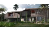 Located on an undeveloped site in the Dominican Republic, the Lodge at Playa Grande is designed to take full advantage of the pristine beach scape at the front of the property, balancing expansive views of the Atlantic Ocean with the experience of the lush, dense jungle that dominates the majority of the site. The Lodge is one of five structures that make up the Wellness Retreat at Playa Grande. The project also includes a guest house, yoga pavilion, beach spa and glitch house, totaling approximately 30,000 square feet. In the most diagrammatic sense, the Lodge is simply a transformation of a courtyard parti. Directed by solar orientation, natural ventilation and the desire to preserve all existing trees and vegetation, the evolved form is a drifting ring that shifts in plan and section just below the jungle’s canopy. The roof is a ruled surface requiring over 200 scissor trusses; each is dimensionally unique, but simple in joinery and construction. The result is a highly complex and fluid structural condition that shifts along corridors, curves through primary double height spaces, and rotates to navigate the geometry at each corner. The design facilitates a panoramic experience of the site, from its diverse jungle landscape to its vast ocean views.