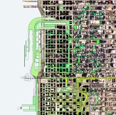 The plan proposes to overlap a gradient that starts on the waterfront with residential and continuously displaced from the irongrid to end on a 200’x 200’ grid that coincides with the Irongrid. This varying gradient subdivides the long blocks creating a morphological variety incorporating green within the urban grid