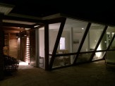 A new transitional entry space between street front and back patio defines the entrance to the house creating simultaneously a parking enclosure. These spaces were defined by a z configuration in plan with planes made of spaced California red wood slats creates a visual filter that provides privacy.
