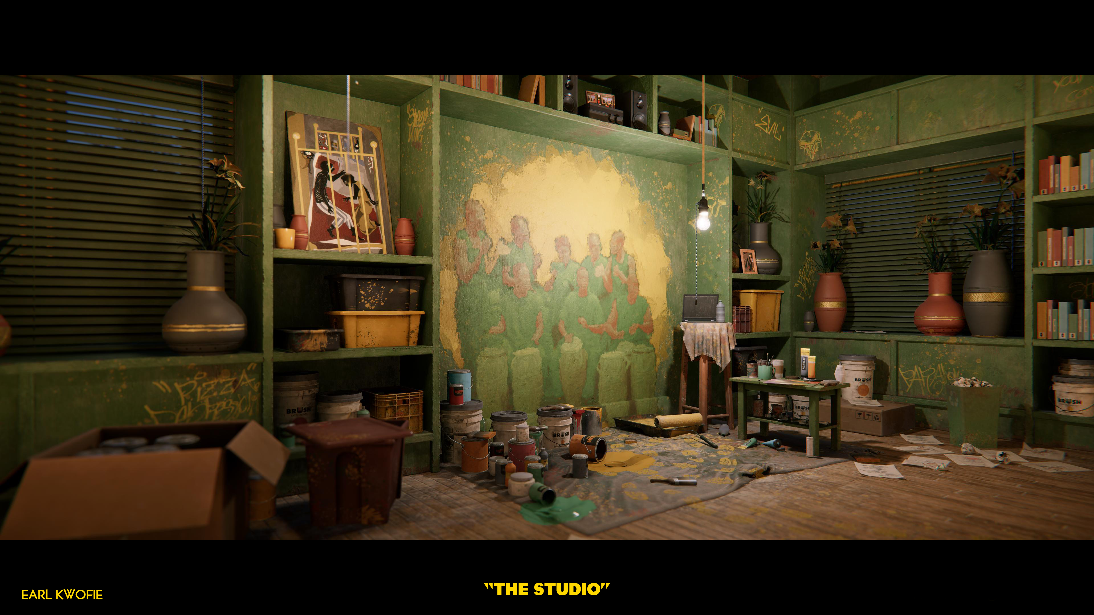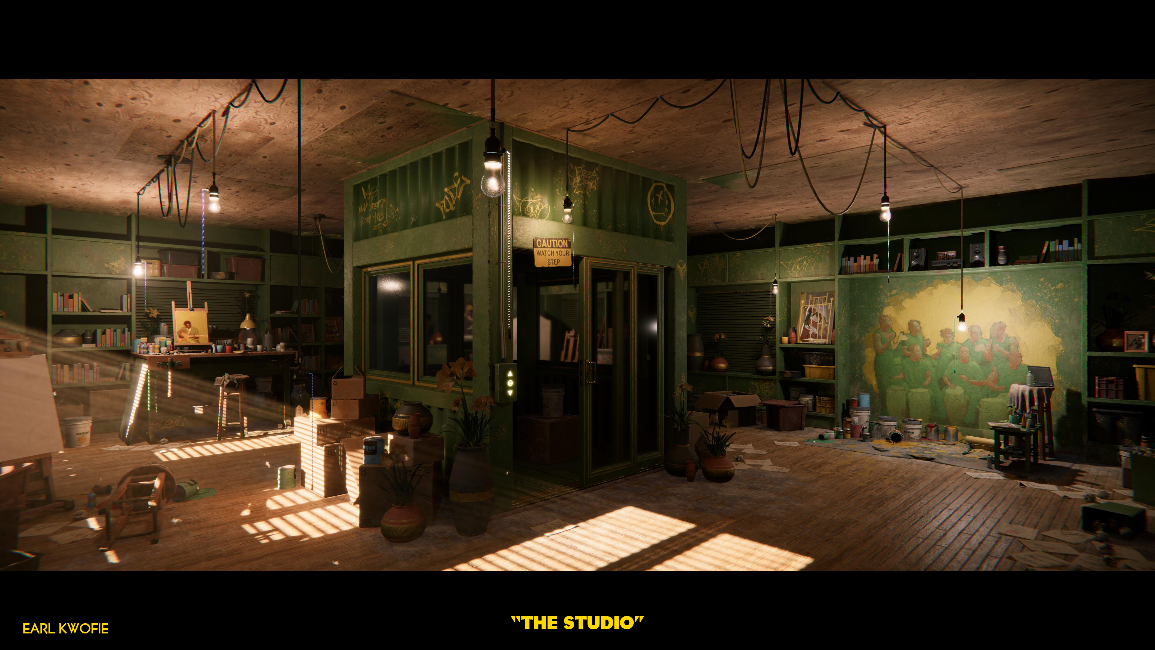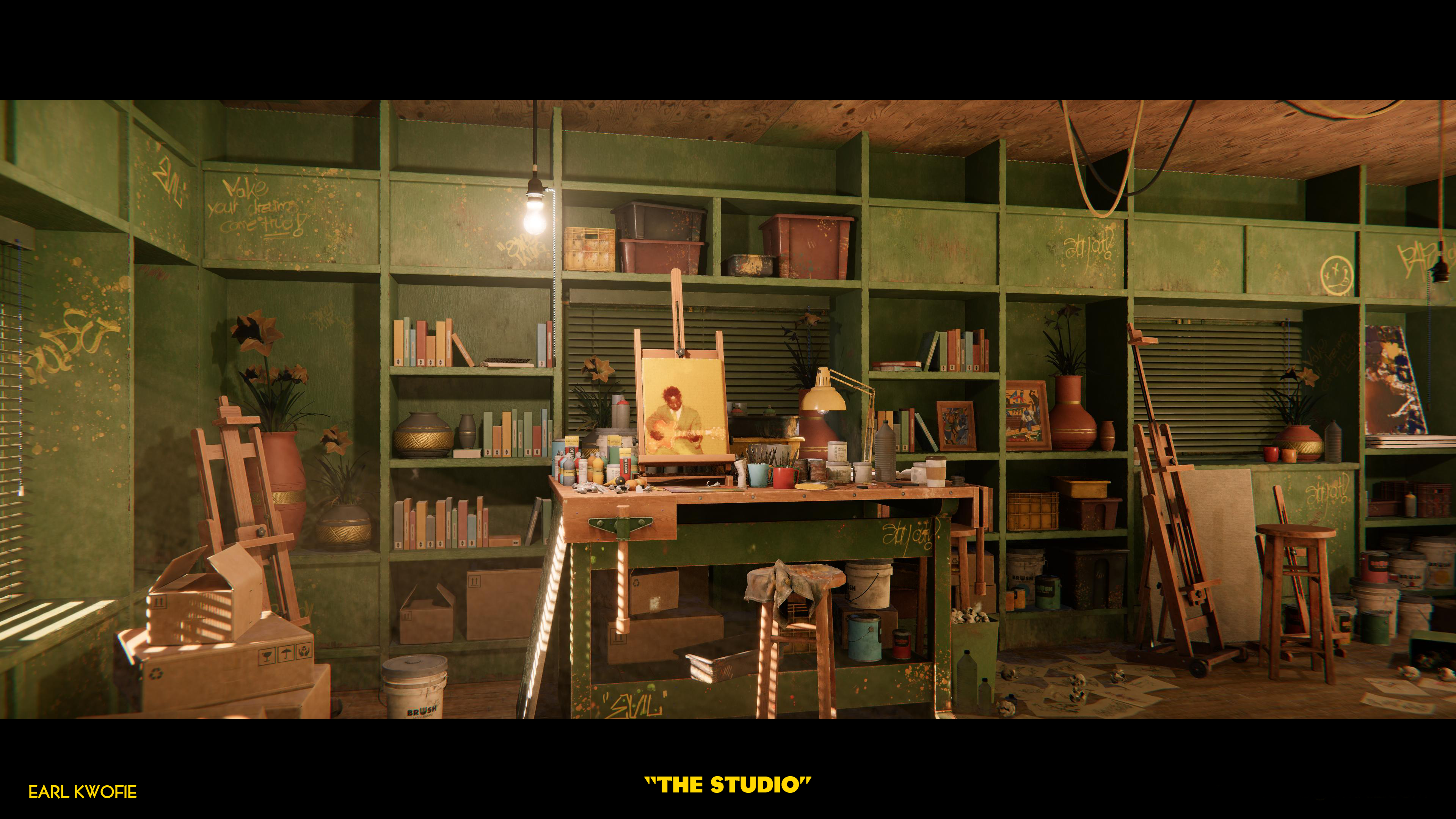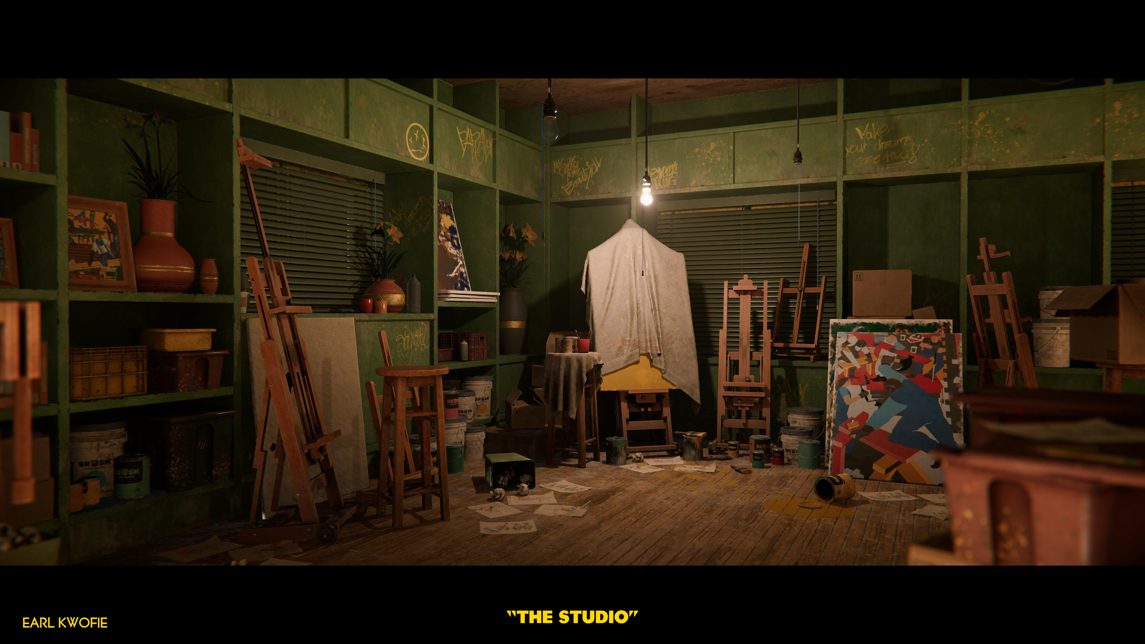 The Studio is a videogame environment that showcases an abandoned office space that has been completely reclaimed and converted into a studio for artists throughout San Francisco and the Bay Area at large. Inspired by the The Apocryphal Gospel of Oakland, a speculative project by Brandi Summers and Olalekan Jeyifous, this project uses the vacant office space as a way to explore ways to address the housing crisis caused by the ubiquitous tech industry.