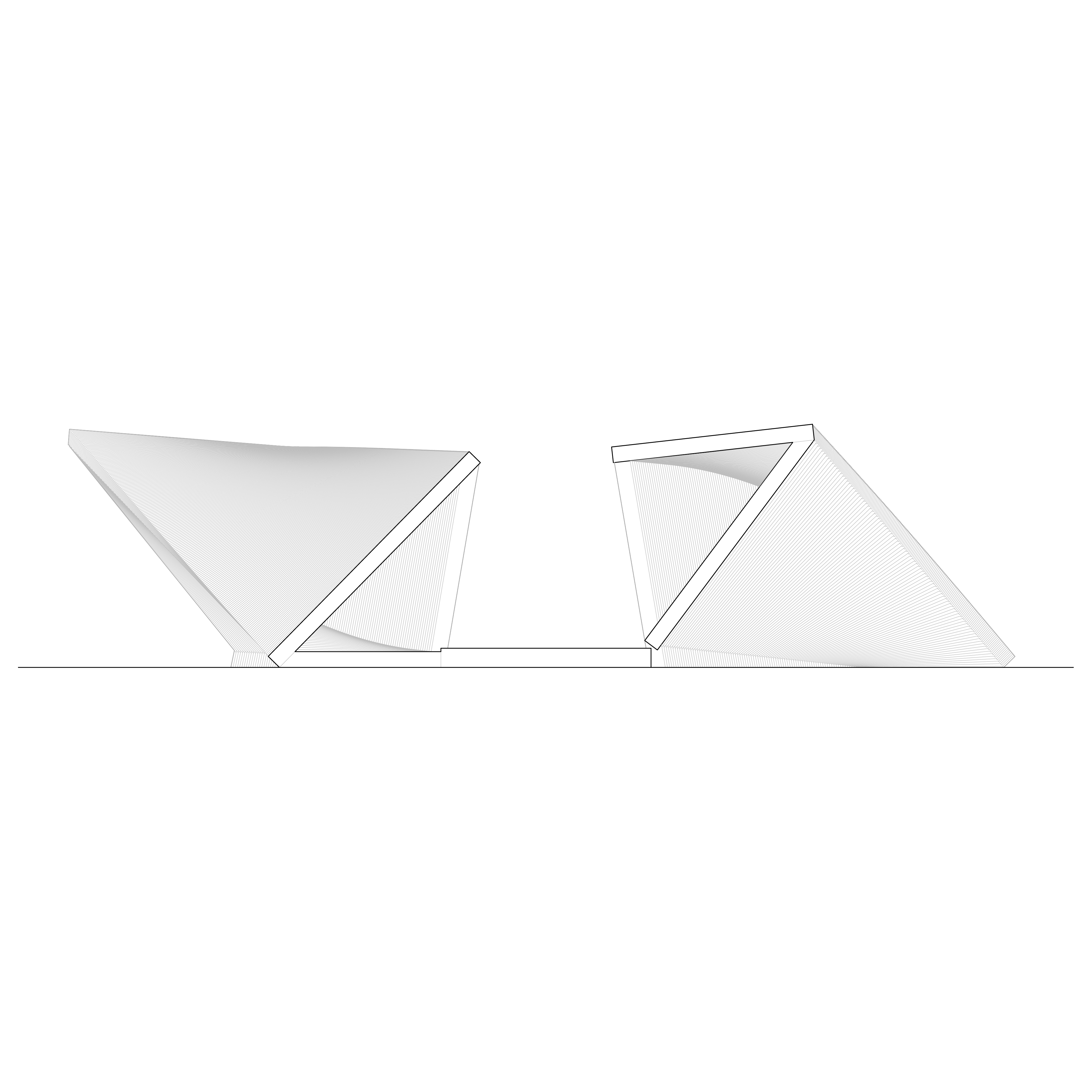 The design of the pavilion draws inspiration from a conceptual inversion of the WWI military trench. Rather than the heavy, opaque earth-retaining walls typical of trenches, the pavilion features a light, elevated wooden structure that is porous and open. Its form also evokes the wings of the flying fish, with an undulating roof canopy that pays tribute to the local fishing heritage and a fish emblematic of the region.