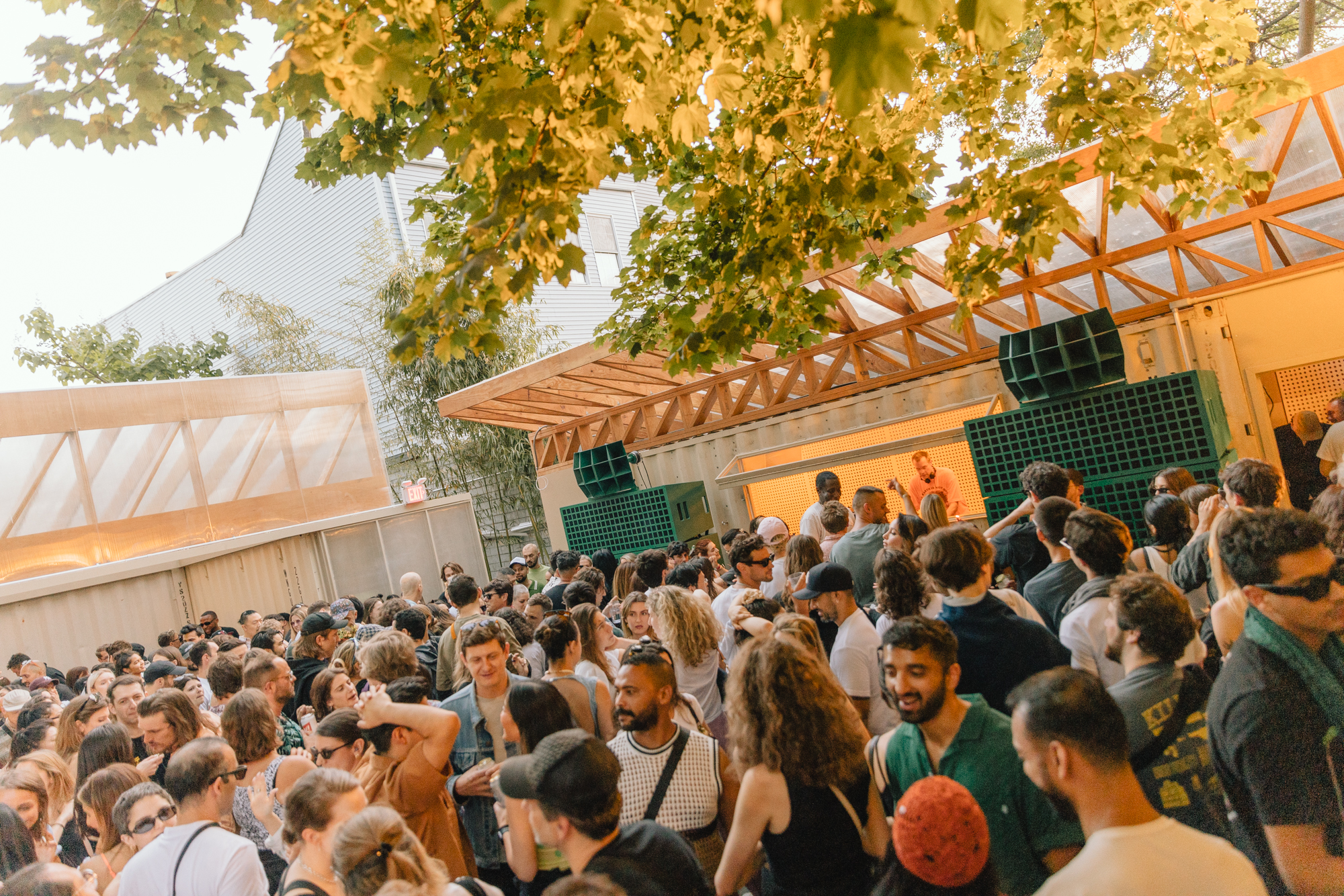 It has been the backdrop to weddings, craft workshops, and private celebrations. Acoustically tuned courtyard walls double as seating and planters, repurposed shipping containers double as amenity and storage, and timber pavilions shelter, orient, and celebrate sunlight. The materials are lightweight, durable, and off-the-shelf, designed to be dismantled, reused, and recycled, aligning with Public Record's zero‑waste philosophy.