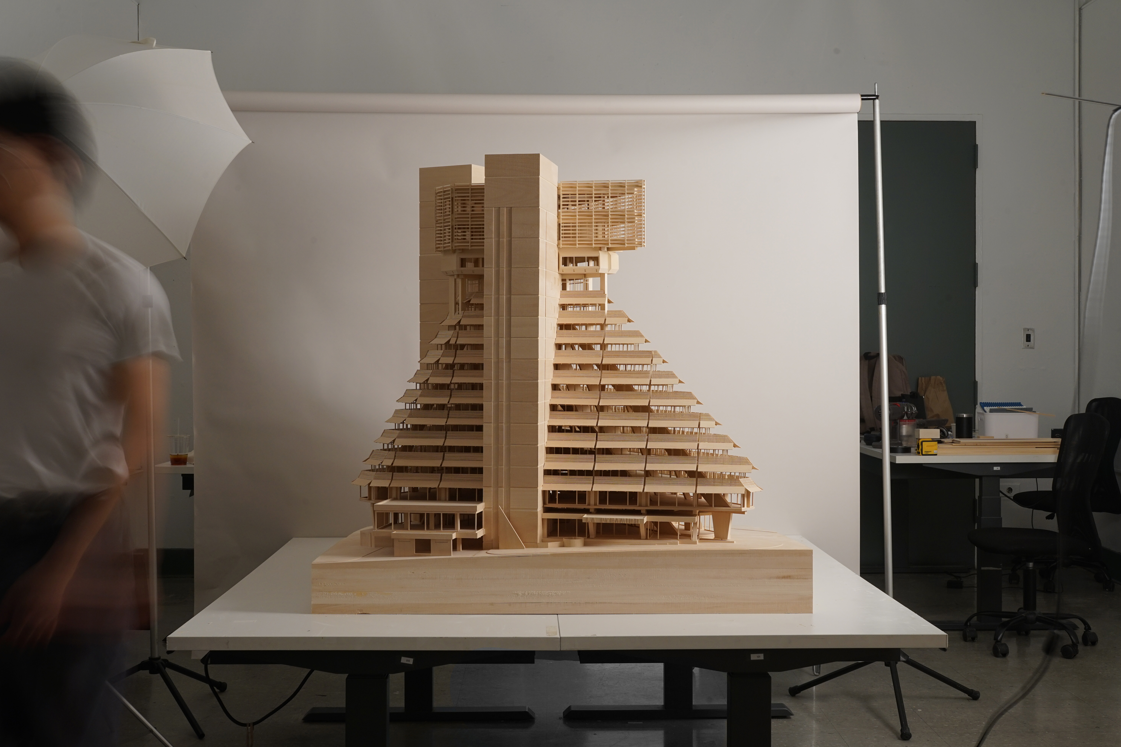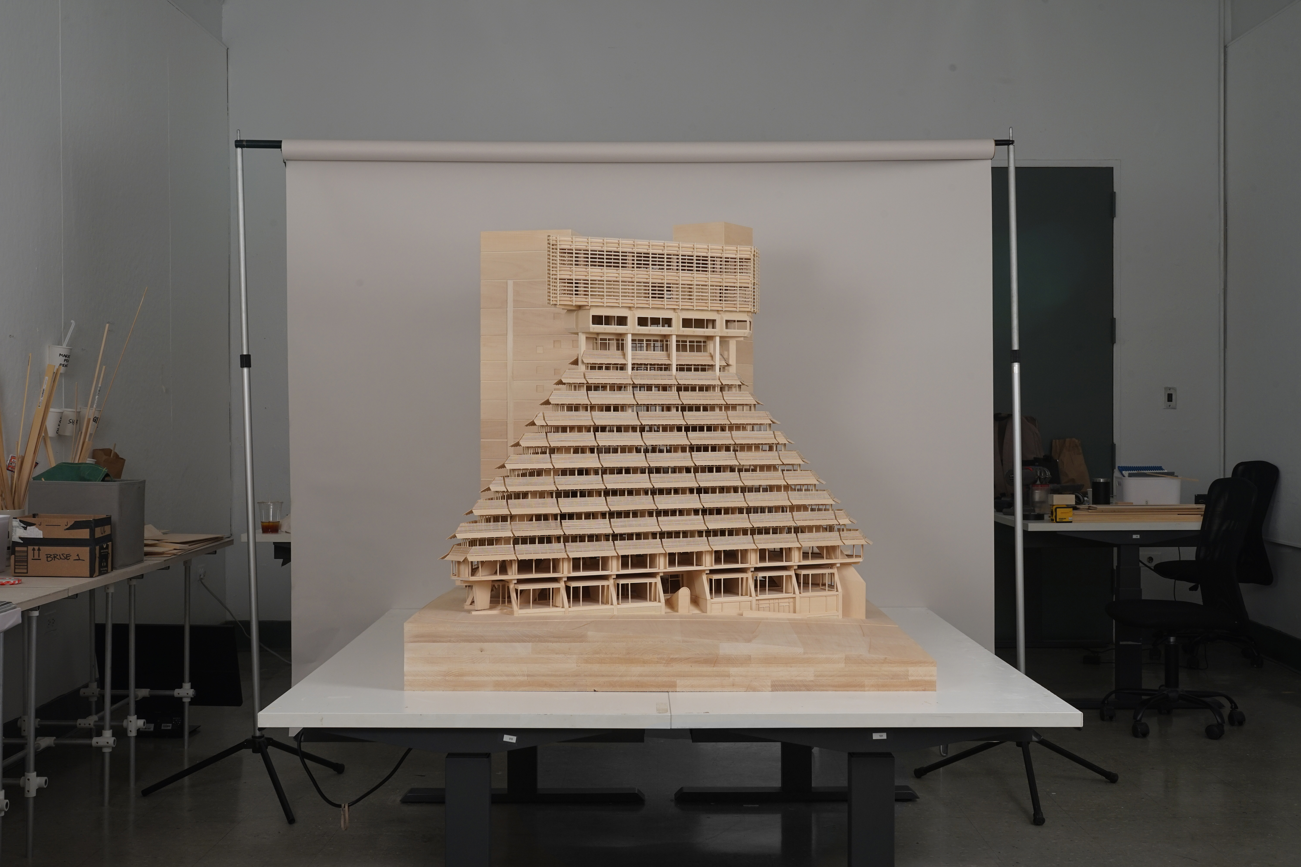 La Pyramide (1973) Rinaldo Olivieri Abidjan, Côte d’Ivoire. 3/16” = 1’ Basswood model for The Museum of Modern Art during Crossings Seminar 2025 at The Cooper Union. MODEL TEAM: Angelis Heredia, Tae Kim Krittee, “Gain” Meemongkol, Sofia Ysabel Aguila Mercado, Julian Yang, Evan Chiang, and Tzu Kuan Liao