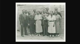 Harlem Community Art Center of the Works Progress Administration | Front row (left to right): Zell Ingram, Pemberton West, Augusta Savage, Robert Pious, Sarah West and Gwendolyn Bennett; back row (left to right): Elton Fax, Rex Goreleigh, Fred Perry, William Artis, Francisco Lord, Louise Jefferson and Norman Lewis. Photographer: Andrew Herman. Image credit: Schomburg Center for Research in Black Culture, Photographs and Prints Division, The New York Public Library.