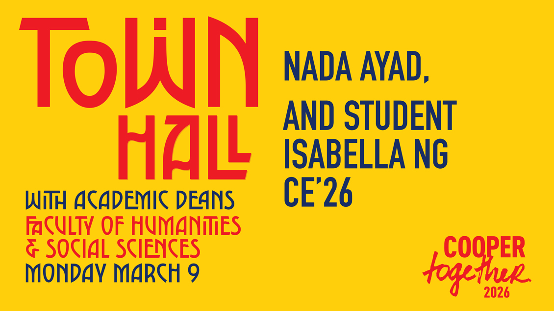 Join Acting Dean Nada Ayad for a special virtual town hall, a part of Cooper Together 2026. She will present on current projects of the HSS faculty and students. Questions may be pre-submitted at registration or asked during the conversation.