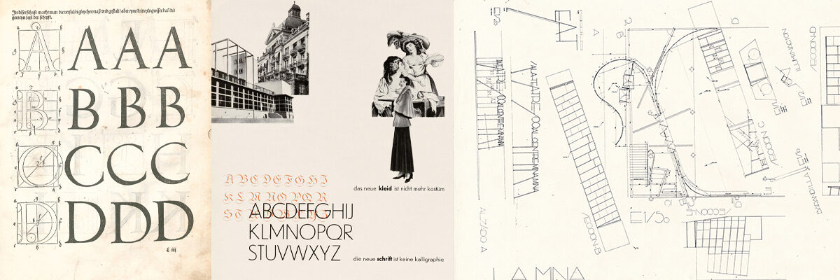 Renaissance and Modernist approaches to letter design share a common reliance on geometry as a mediating structure between writing and architecture, though they deploy it with very different intentions. In this talk as part of the Herb Lubalin Lecture Series Manuel Sesma revisits Renaissance letter construction manuals and Modernist typographic and architectural models and examines how geometry evolved from an idealizing analytical tool into a constructive language for shaping the modern world. These historical frameworks are distilled in the architectural lettering of Enric Miralles (1955–2000), whose drawings dissolve the distinction between writing, technical lettering, and architectural form. By examining Miralles’s plans and their later typographic interpretations, the lecture reopens the question of lettering as an integral component of architectural design.