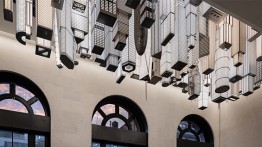 Elmgreen & Dragset, "The Hive", 2020 Stainless steel, aluminum, polycarbonate, LED lights, and lacquer Commissioned by Empire State Development in partnership with Public Art Fund for Moynihan Train Hall, Photo: Nicholas Knight, courtesy Empire State Development and Public Art Fund, NY