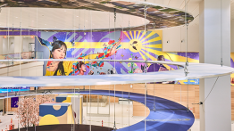 Layqa Nuna Yawar’s vibrant mural, Between the Future Past, spans 350 feet of the terminal’s walkway and celebrates the abundant diversity of Newark, New Jersey, and the New York Metropolitan Area. Reimagining the format of a historical mural, Layqa Nuna Yawar’s artwork reflects a continuous cyclical pattern of time which embraces past, present and future. Drawing on his indigenous heritage and Kichwa language, he sees the artwork as “a looped narrative that can be read from right to left and left to right.” From airport workers to poets to LGBTQ+ heroes, Layqa Nuna Yawar’s mural rethinks who should be celebrated publicly, proposing that all individuals are equally remarkable in their humanity. People brought by successive waves of global migration, including those from Black, Brown, Asian, and Middle Eastern backgrounds, as well as Indigenous people, are represented in his expansive vision. The artist included flora and fauna, such as The New Jersey state flower and birds native to the New Jersey area’s marshlands, as symbols of growth. The portraits highlight narratives of personal accomplishment and perseverance that have often been overlooked.