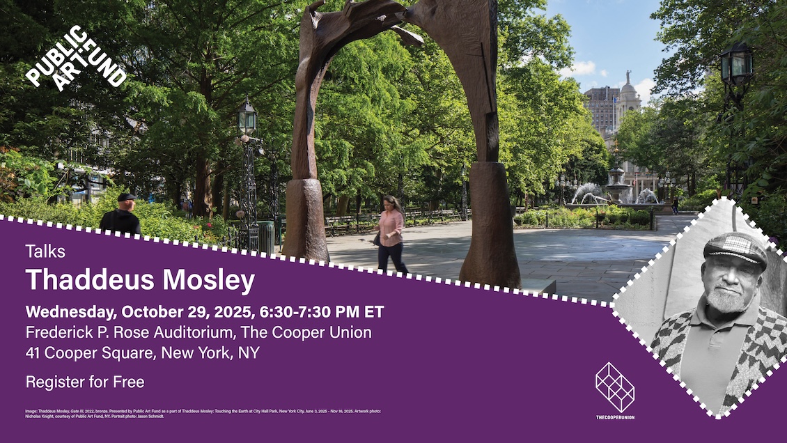 Artist Thaddeus Mosley and Public Art Fund Assistant Curator Jenée Daria Strand will be in conversation about Touching the Earth, Mosley’s first public art exhibition in New York City, on view at City Hall Park through November 2025. The exhibition features eight bronzes recently cast from wood sculptures Mosley created between 1996 and 2021.