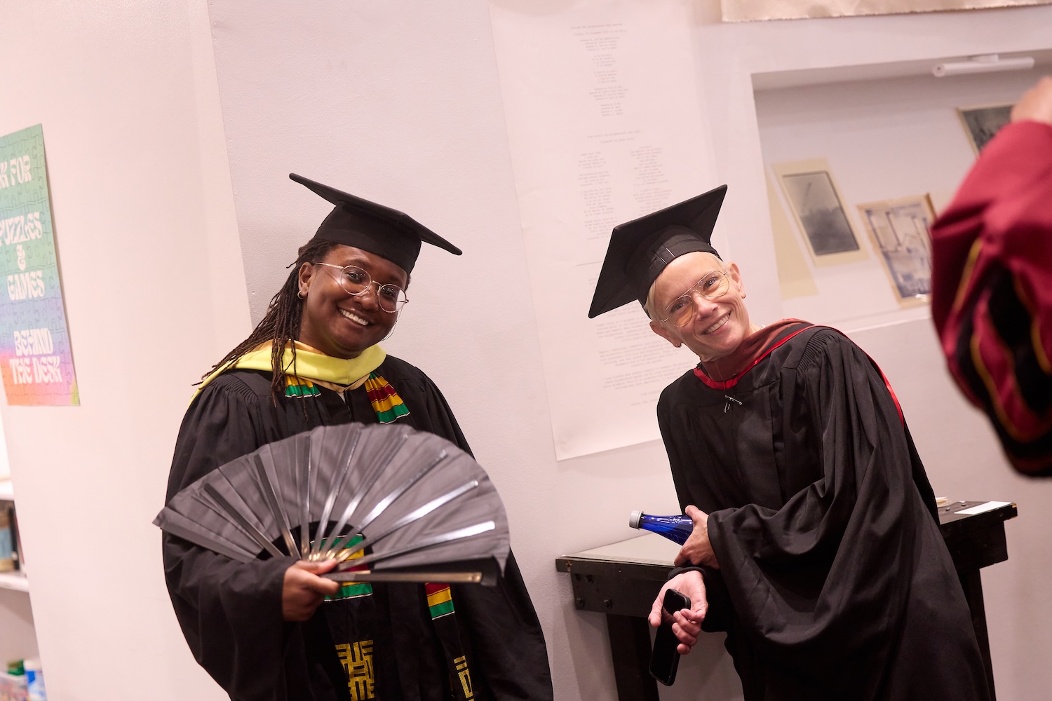 Mackenzie Williams, art and architecture librarian, and School of Art Dean Adriana Farmiga A’96