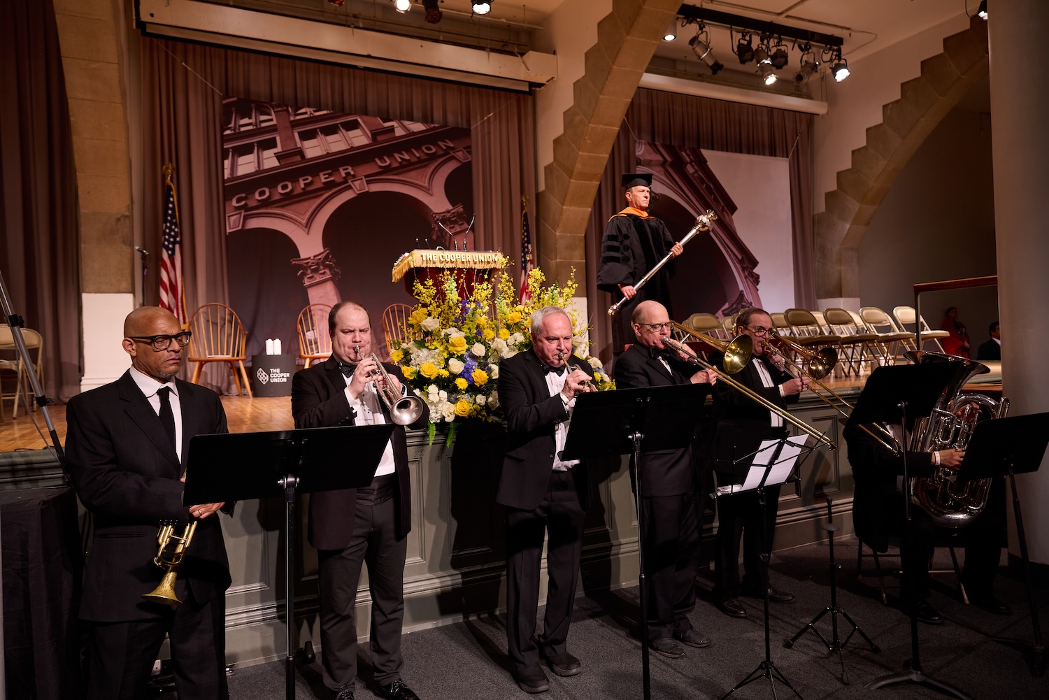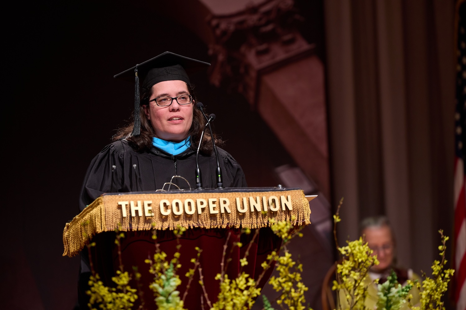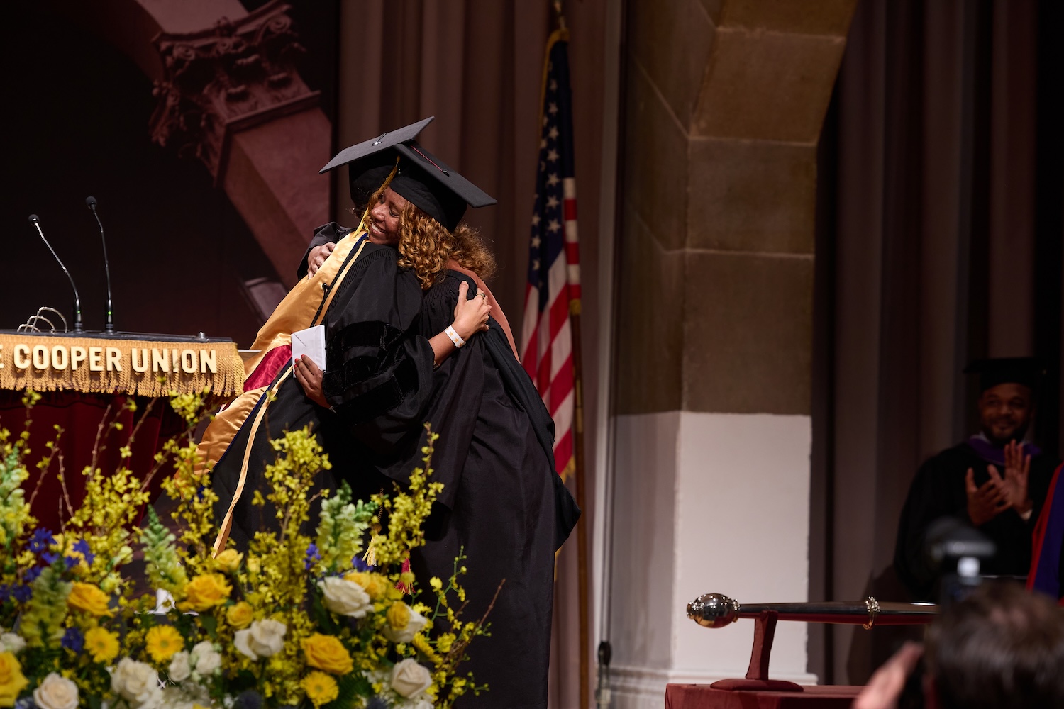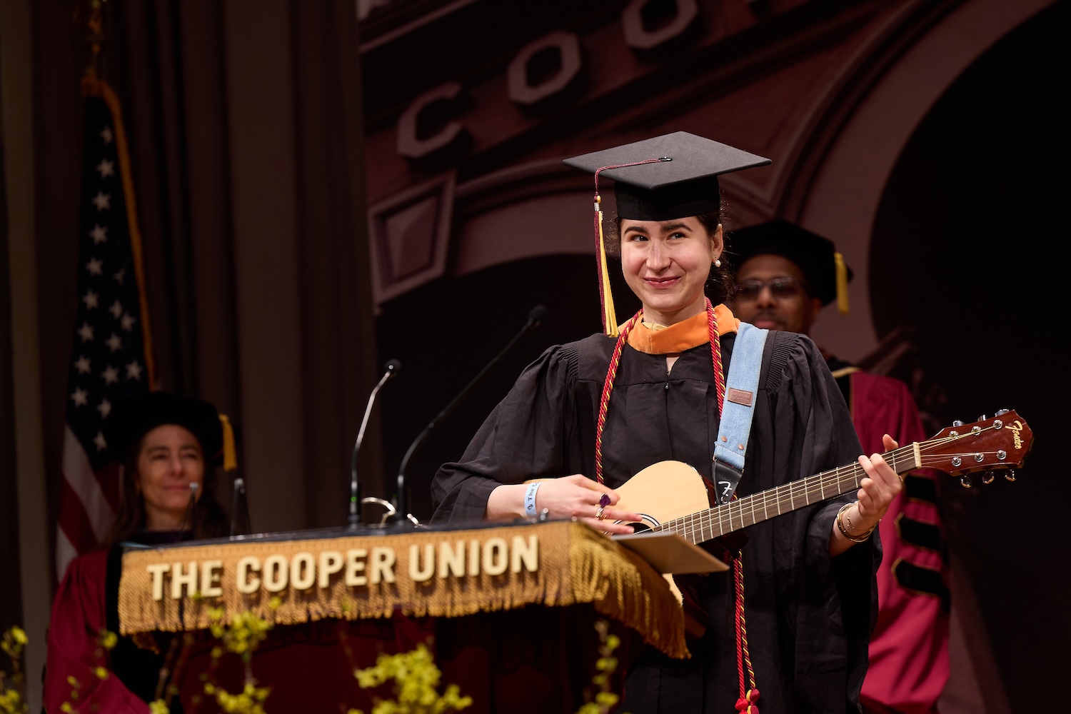 The 165th Commencement of The Cooper Union was held on Thursday, May 29, 2025, in the Great Hall. Interim President Malcolm King EE’97 presided over the ceremony, welcoming attendees and commending the Class of 2025 on their achievements. A rendition of the National Anthem was performed by Camille Rotemberg, a graduating senior in the Albert Nerken School of Engineering. Ross Wisnewski, a longtime supporter of Cooper along with her husband George Reeves ME’64, delivered the invocation. Watch the full ceremony here.