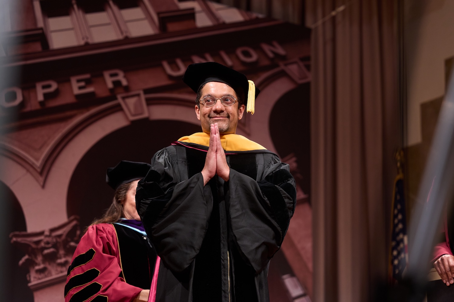 Shankar Vedantam receives his honorary degree before he addresses graduates and families