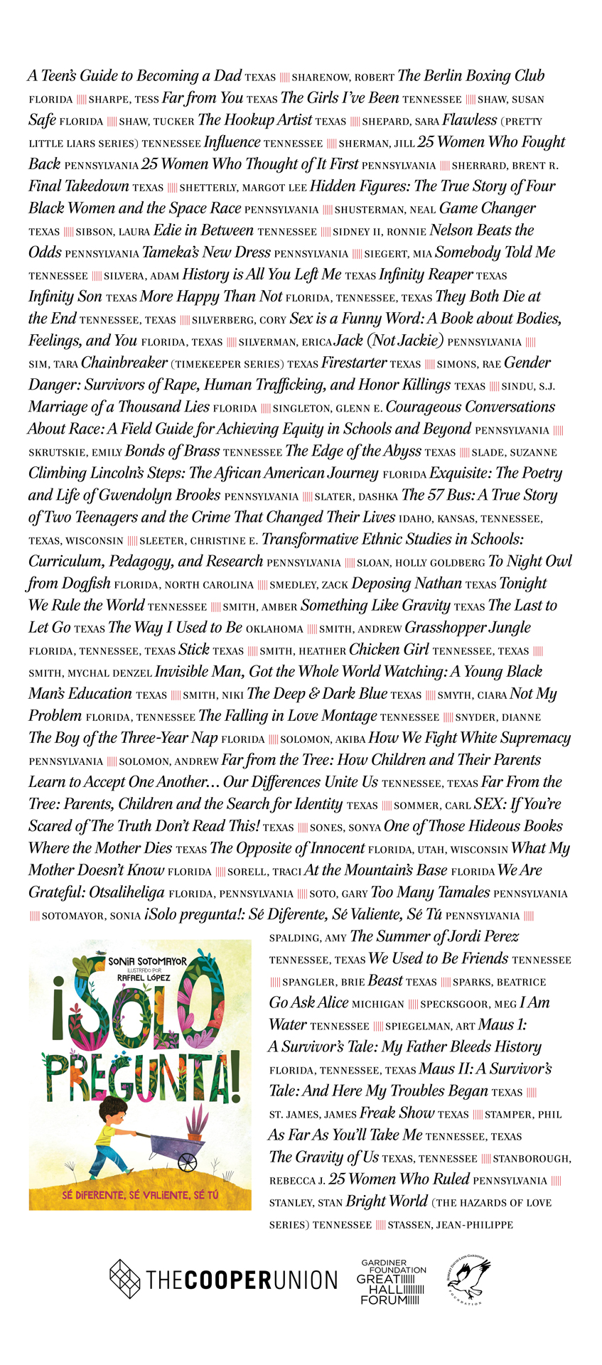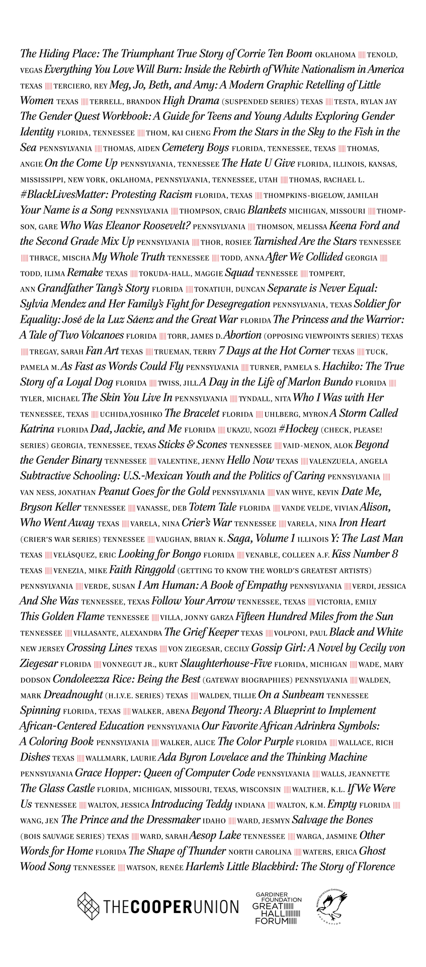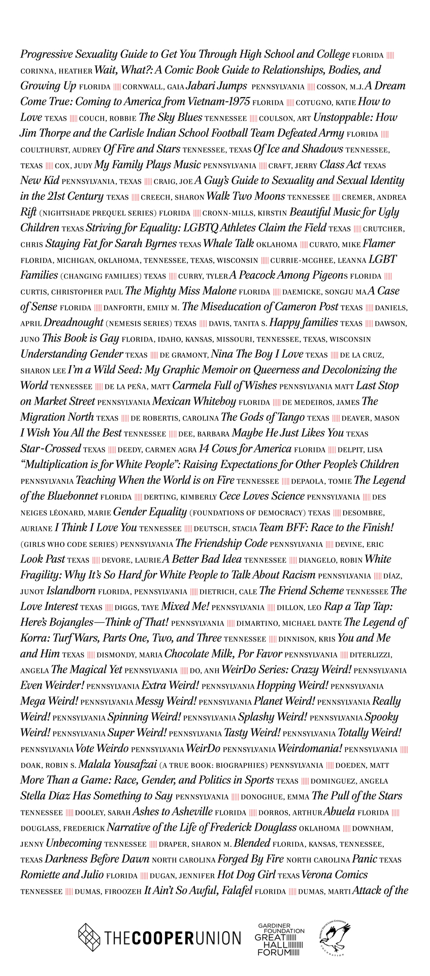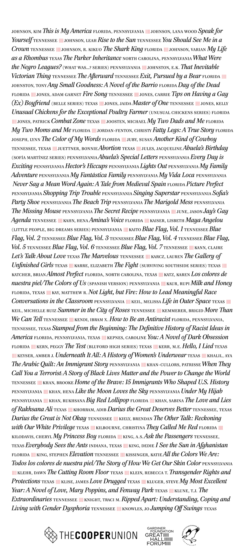Across the country, book bans and challenges have reached record levels. In conjunction with the event Read On: Book Bans and Censorship in America, this exhibition in the colonnade windows of the Foundation Building features a list of book titles that have been subject to restricted or diminished access in schools, as documented in PEN America’s Index of School Book Bans.