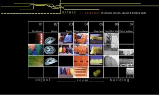 Since it is impossible to dispose of these objects due to their extremely high-embodied material energy, the premise of this research is the development of post-praxis or 'architectural' reuse design strategies. The intention is to revisit our design and material culture, not by attempting to create new memory, but by recycling meanings of objects and spaces with embedded memory. In parallel, the intent is to go beyond existing techniques, such as reuse through signification and collage of unrelated building parts and to explore the possibilities of cast materials and generative processes of 'moulding' related to computation.