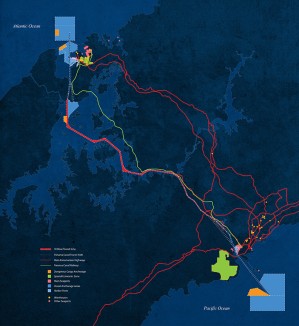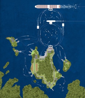 Once the most important trading route that connected the Atlantic and Pacific Ocean, the Panama Canal, endured a history of political and cultural strife that specifically dealt with the autonomous control of the waterway between the Republic of Panama and the United States of America. More than a decade later, after the handover of the canal back to Panama, the country is now facing a new shift in global interests. With the growing economical demand of the international community, the size of container ships has redefined the ownership of the Panama Canal; as a canal belonging to the world. My project deals with the internal workings of the Panama Canal as well as the growth in container vessels, as a way to create a new urbanism which involves the use of boats and floating programmatic spaces. It will be a community created on the basis of trade and interaction between the vessels and boats, and also a way to urbanize areas where activity is stagnant.