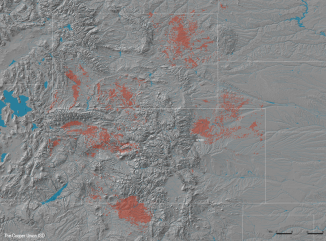 Hydro-fracking well pattern and major rivers in Colorado.