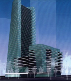 Met 2 consists of a 48-story steel office building with a concrete core. It is connected to a 44-story, 513 feet tall hotel of reinforced concrete construction over a 13-story pre-stressed parking garage. The hotel ballroom has trusses that span 110 feet, supporting seven stories of parking. The Met 2 complex has a total of 1.9 million square feet and is currently under construction. With the hotel topped off in May 2009 and the office building topping off August 2009. In addition to its multiple amenities, Met 2 is equipped with extensive health club facilities including and indoor basketball court and pool.