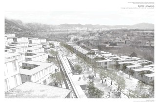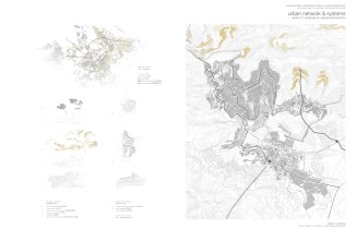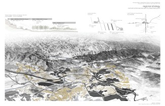 Along the rail, a linear city will be used to cross mobility infrastructure and mediate topography. These “urban bands” and “ecological corridors” will be phased with strategic campus-catalysts centered on alternative energy and material research & development.