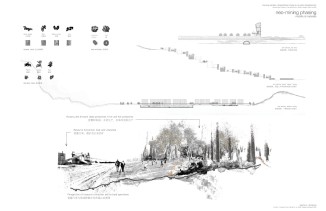 Structured along the main existing rail lines of the Qinglonghu district, a transition hybrid-economy of mining and remediation is introduced. Mobility and resource extraction sets the stage for multiple educational and research campuses to activate an urban transformation that aspires to increase “mobility, income, and leisure.” Destructive practices will evolve into constructive ones, setting the stage for an urbanization rooted in both traditional and new industries.