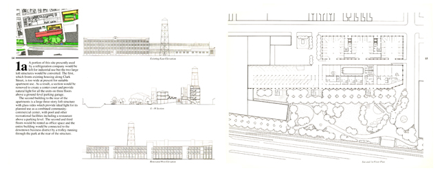 The study shows that buildings constructed to meet the needs of a bygone era of industrial development can be adapted for new, modern roles. Black and white photographs of the site are accompanied by exquisite ink drawings of the solutions.